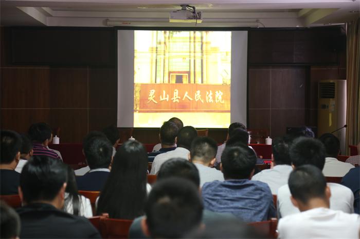 與會人員首先觀看了反腐倡廉警示教育片《廣西欽州市征地拆遷中心腐敗窩案警示錄》。