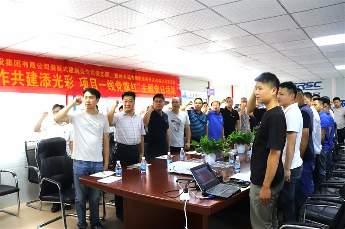 5月18日下午,通號(hào)建設(shè)集團(tuán)有限公司裝配式分公司與賀州市城市建設(shè)投資開發(fā)有限公司黨員在賀州市平桂區(qū)鵝塘鎮(zhèn)第二初級(jí)中學(xué)整體遷建項(xiàng)目部聯(lián)合開展“合作共建添光彩,項(xiàng)目一線黨旗紅”主題黨日活動(dòng)。活動(dòng)先后進(jìn)行了集體重溫入黨誓詞、黨的“十九大”知識(shí)競賽、黨員先鋒崗授旗、拔河比賽以及集體種植草坪等。通過此次活動(dòng),通號(hào)公司與城投公司員工增進(jìn)了友誼,加深了感情增強(qiáng)黨員職工勇爭先進(jìn)、團(tuán)隊(duì)合作的精神。