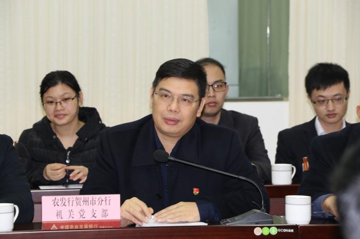 賀州市市長助理、農(nóng)發(fā)行賀州市分行黨委書記、行長毛家才在儀式上講話